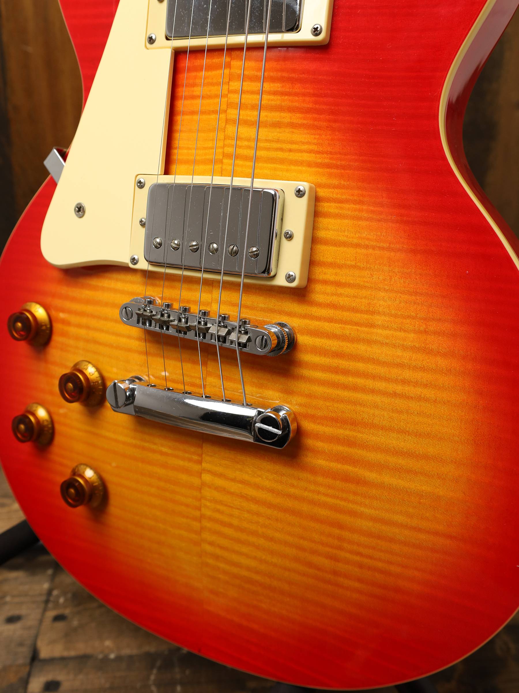 Left-handed shredders!! This pre-owned 1999 Epiphone Les Paul Standard is calling you. In a beautiful Cherry Burst finish this Inspired by Gibson classic is ready to rock with it’s new owner. Comes with all the essentials hard shell case, pickguard, 2 strap, cleaning cloth and several packs of various sets of strings.